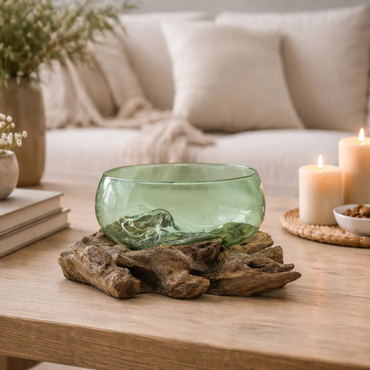 Tazón Mediano de Vidrio Fundido sobre Madera Natural