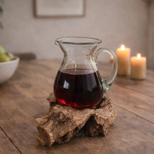 Jarra de Vidrio Fundido sobre Madera Natural